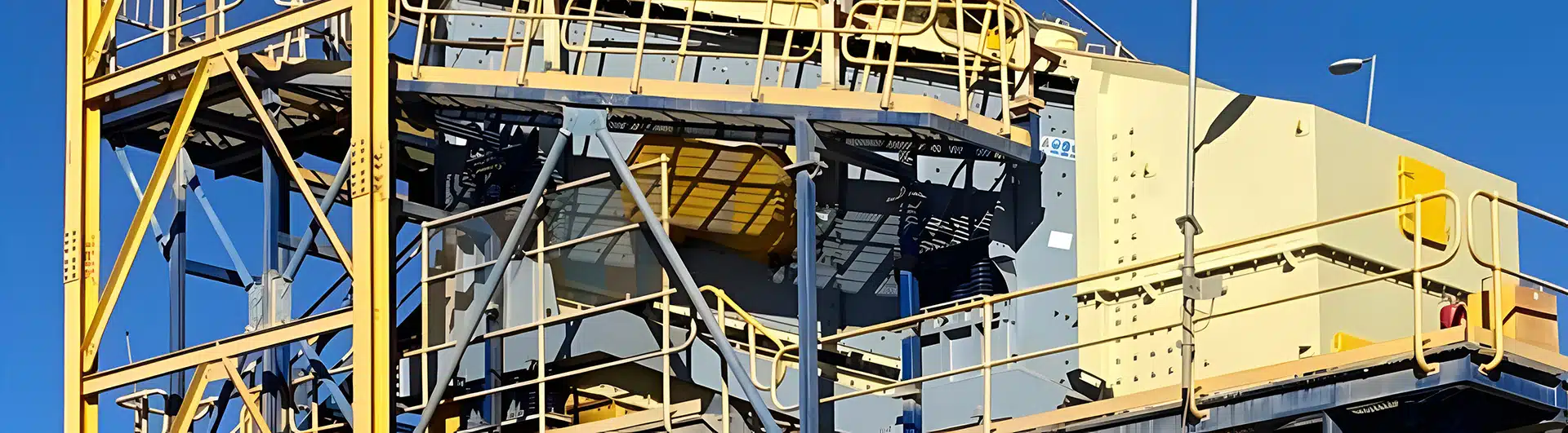 Заказчик эксплуатирует дробильно-сортировочный комплекс на золотодобывающем руднике в Западной Австралии. Линия производительностью 1,6–1,8 млн тонн руды в год включает щековую и конусную дробилки, магнитные сепараторы, конвейеры, наклонный двухдековый обдирочный грохот и бункеры-накопители.